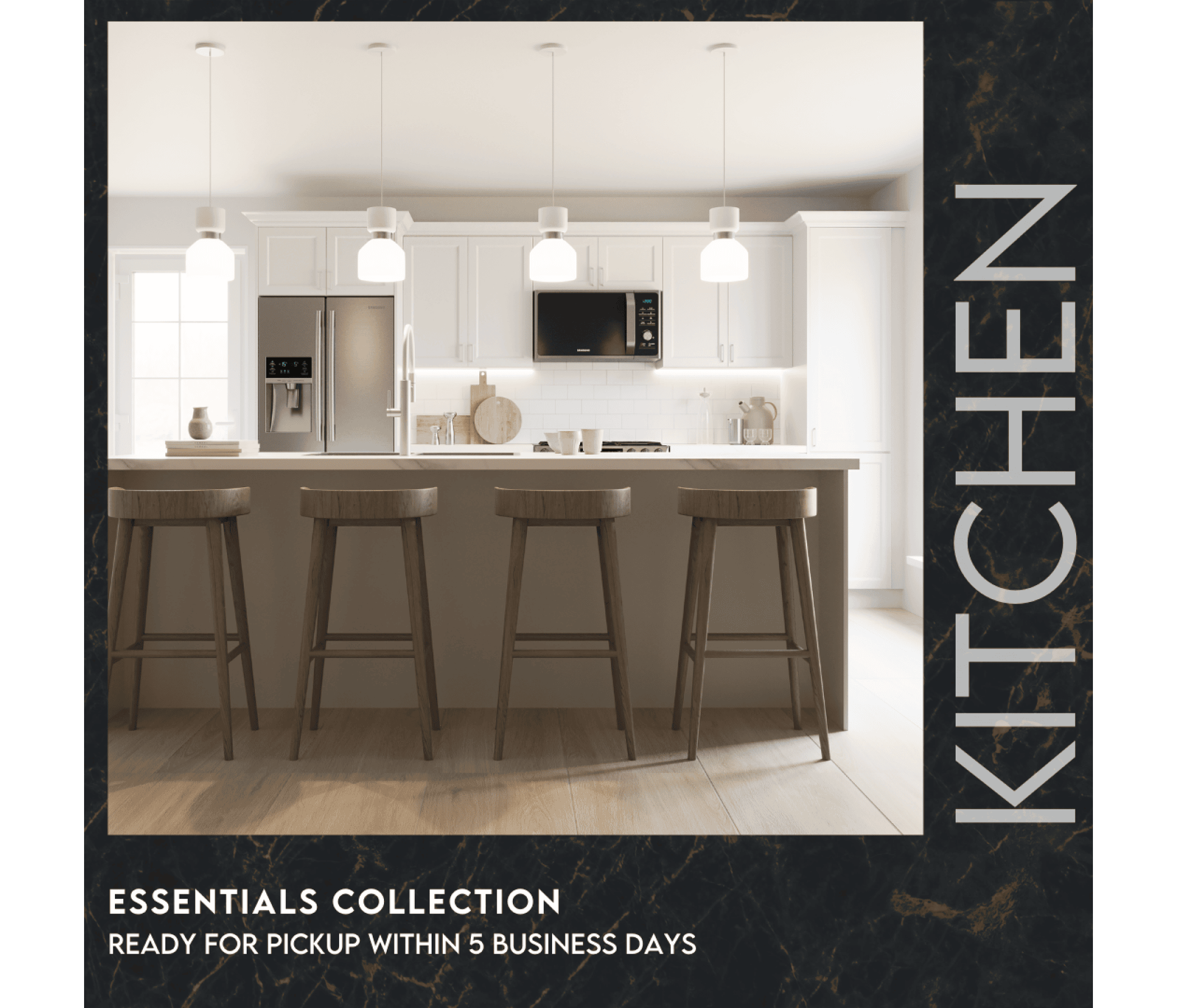 It's all in the details for cabinetry with plenty of smart storage for spices, baking, pantry, and garbage bins. Complete with elegant bar with backings, crown mouldings and toe kicks, welcome to our kitchen cabinetry line Essentials By Westwood.